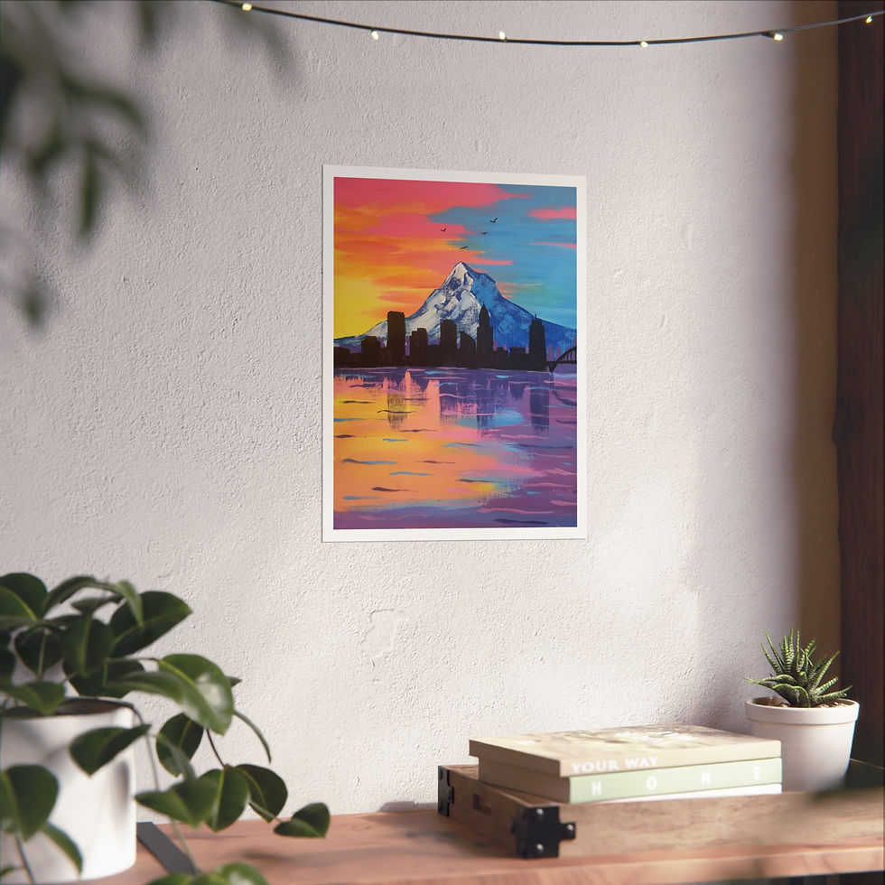 Sunset Mt Hood, Portland Cityscape Painting, Fine Art Print