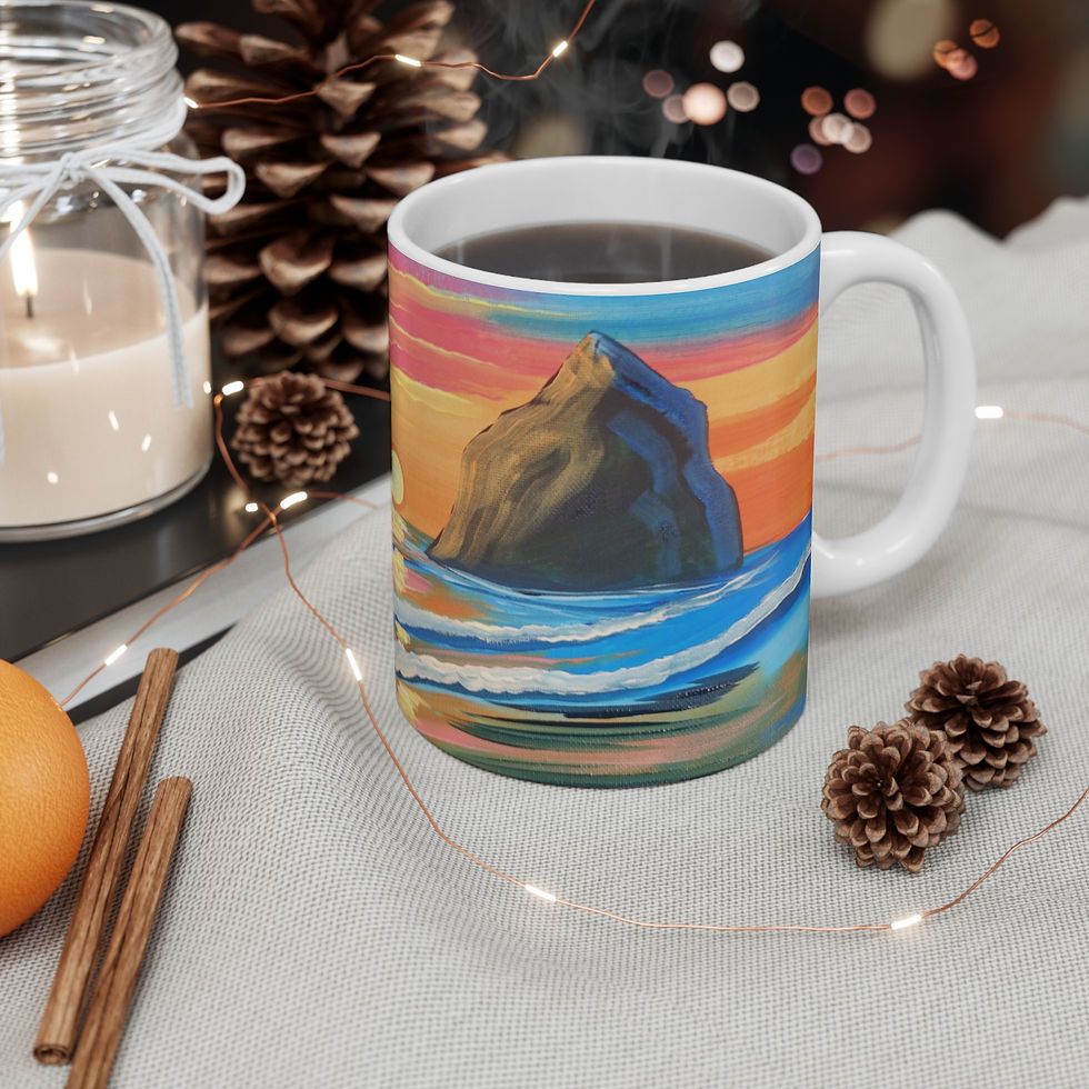 Sunset Cannon Beach Ceramic Mug — Colorful Ocean Sunset 11oz